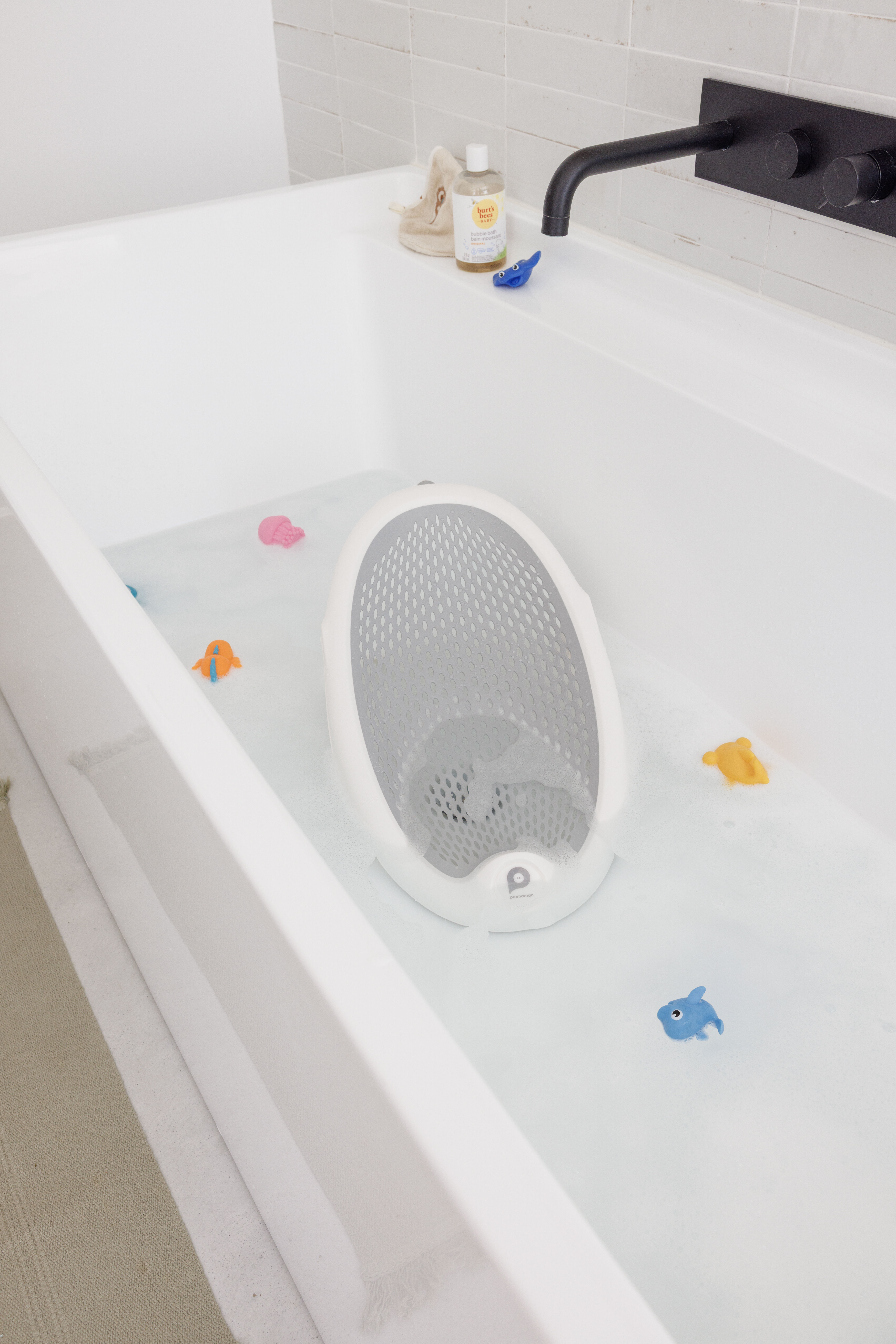 Για να κάνετε την ώρα του μπάνιου ακόμα πιο ευχάριστη, ορισμένα αξεσουάρ συμπληρώνουν τη χρήση της ξαπλώστρας. Το δέρμα του μωρού αξίζει ιδιαίτερη φροντίδα. Προτιμήστε απαλά προϊόντα χωρίς άρωμα, ειδικά σχεδιασμένα για βρέφη. Ένα σαπούνι με υπερλίπος ή ένα τζελ πλύσης δύο σε ένα για σώμα και μαλλιά θα απλοποιήσει τη ρουτίνα του μπάνιου διατηρώντας παράλληλα το προστατευτικό υδρολιπιδικό φιλμ του δέρματος.